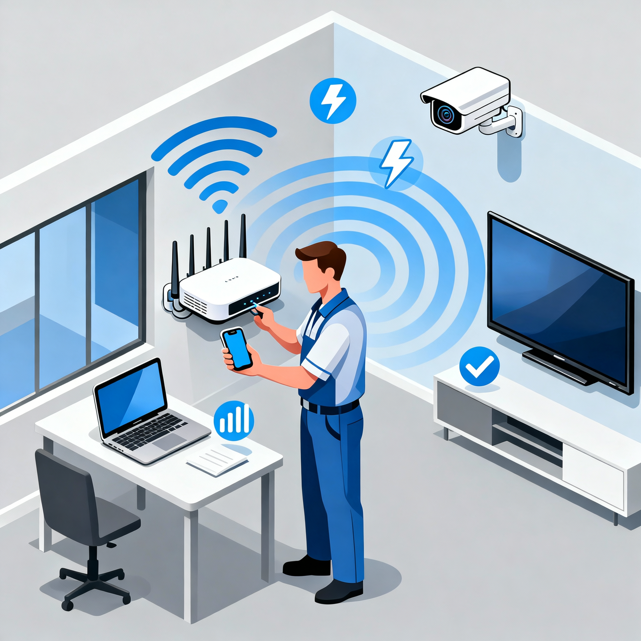 Boost internet coverage and speed with professional Wi-Fi installation.